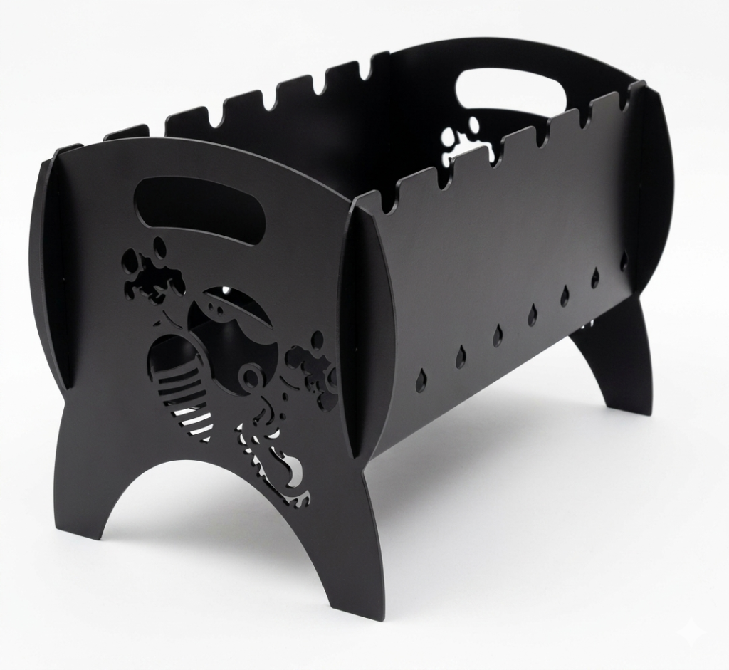 Изготовлен из стали толщиной 3 мм — не прогорит, не деформируется.